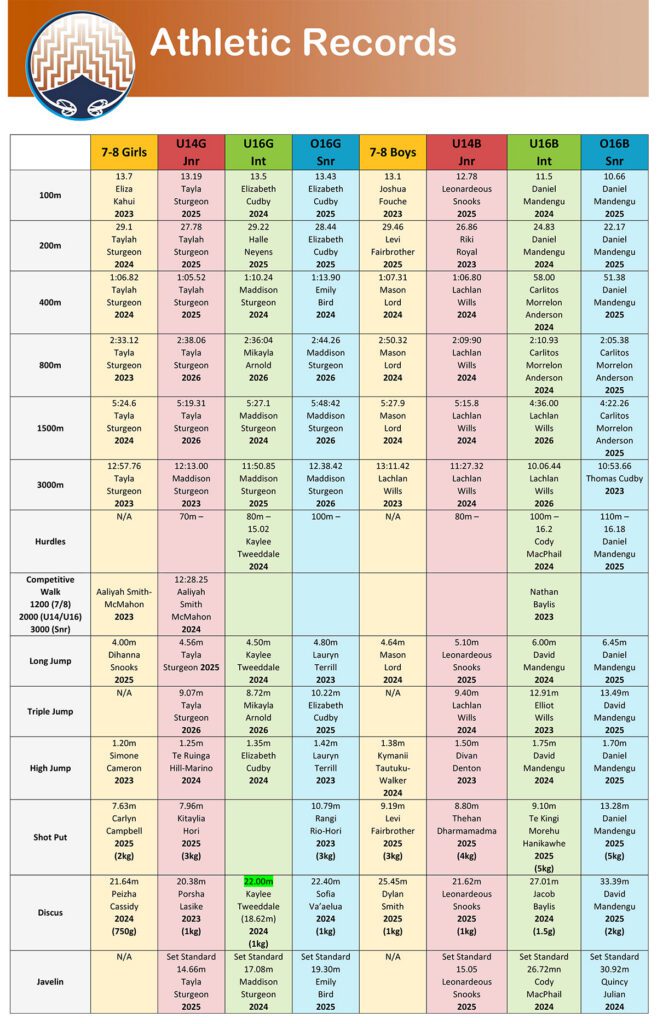 2026 Te Paepae o Aotea Athletic Records