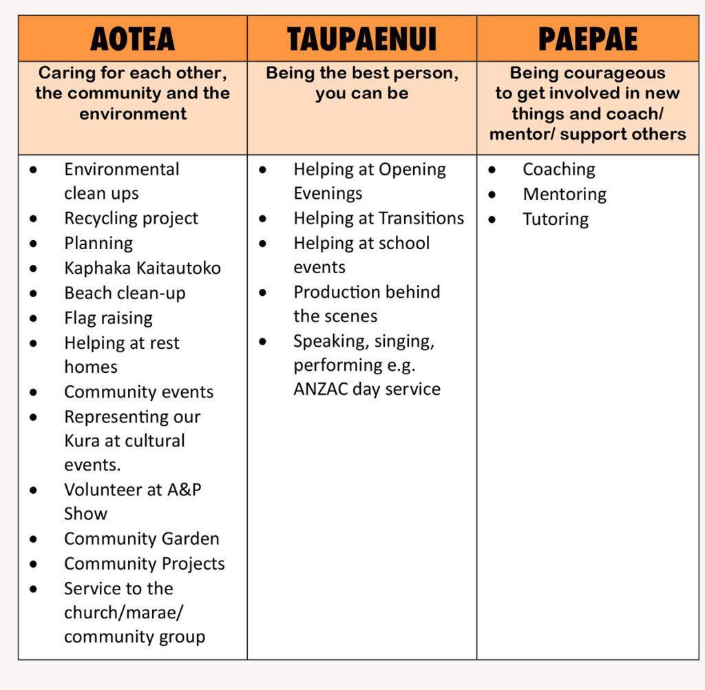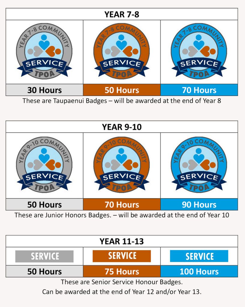 Students can collect and fill out a Te Paepae o Aotea Service Badge booklet from the School Office.
