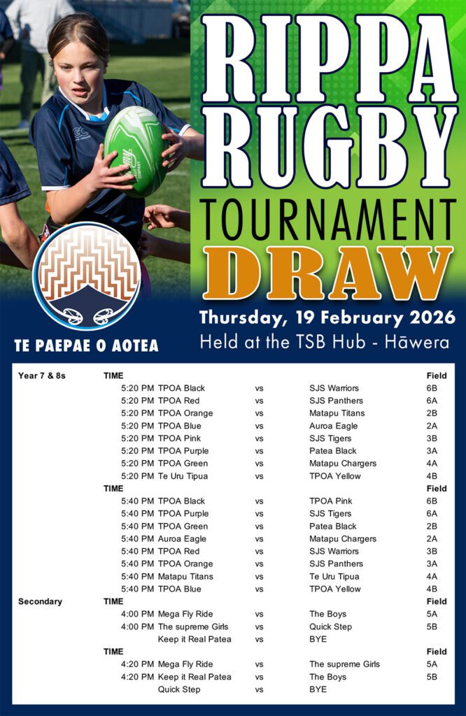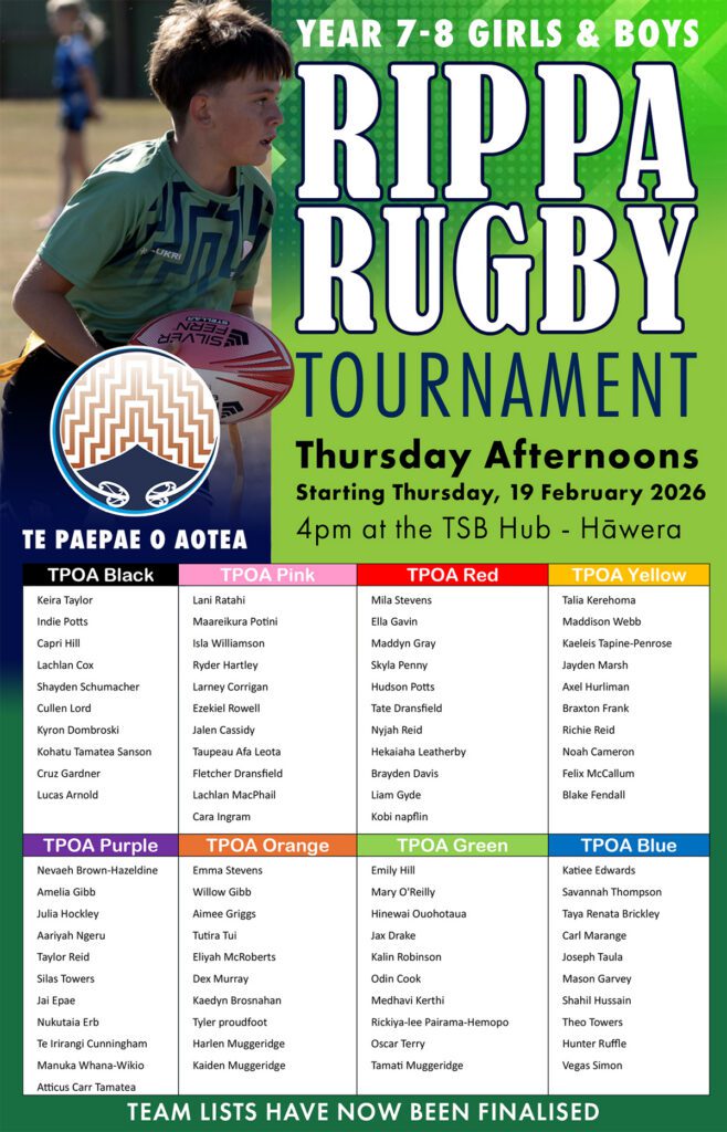 2026 Year 7-8 & Secondary School Hāwera Rippa Rugby Summer Tournament