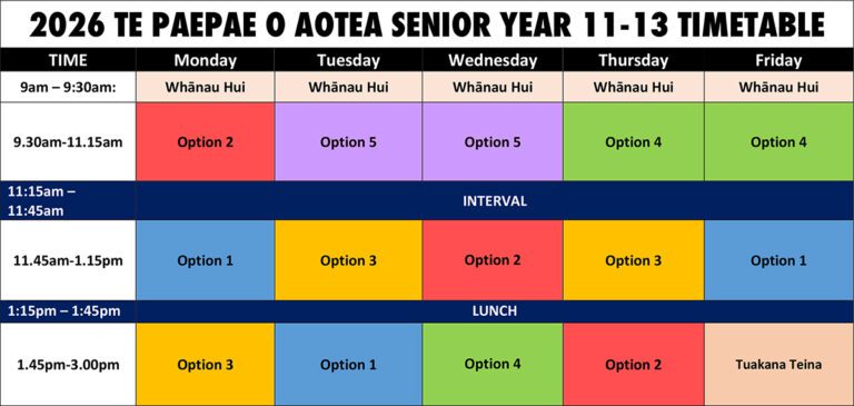 2026 Senior Timetable